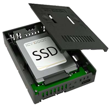 In den älteren Desktop-Computern (iMac) braucht es zusätzlich einen Adapter, weil eine 3.5" Harddisk ausgebaut und eine 2.5" SSD eigebaut wird.